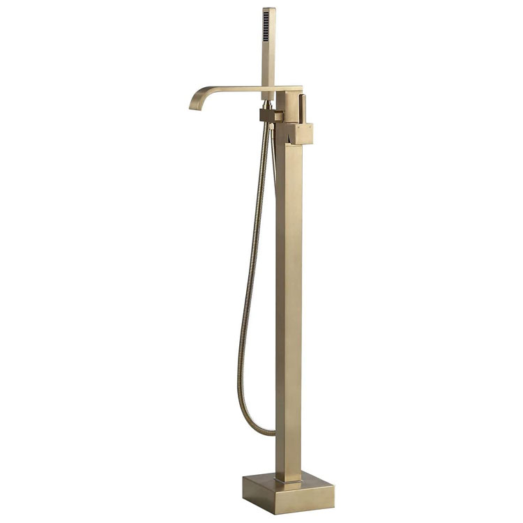 Yanasi® Fırçalanmış qızılı müstəqil vanna mikser materialı mis gövdə, sink ərintisi kran sapı. cUPC/Watmark/CE/ACS sertifikatı əldə etdik, biz OEM təmin edə bilərik